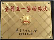 中華全國(guó)總工會(huì)授五一勞動(dòng)獎(jiǎng)狀
